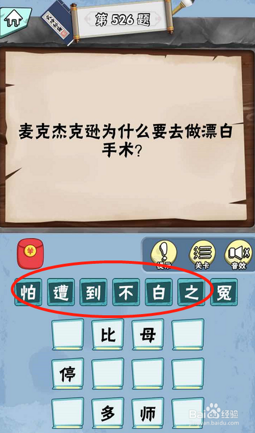 脑子急转弯达人游戏Lv6绝代奇才第526关内,提问迈克尔杰克逊为什么要去做漂赤手术。
