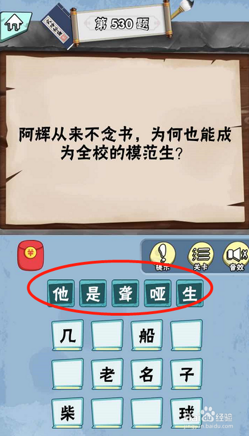 脑子急转弯达人游戏Lv6绝代奇才第530关内,提问阿辉从来不读书,为什么还会当作为全校的榜样生。