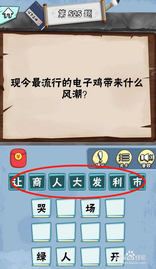 脑子急转弯达人游戏Lv6绝代奇才第525关内,提问此刻最风行的电子鸡带来了什么风潮。