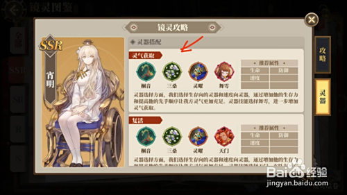 “宵明”常选择“三桑”这类保存标的目的的器灵与之搭配,本家儿要增添生命、防御、速度等属性