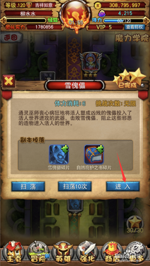 点击左侧通俗本,再点击右侧魔力学院副本。