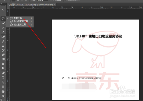 接着,在左边东西栏中,选“套索东西”,把水印部门圈出来,如下图