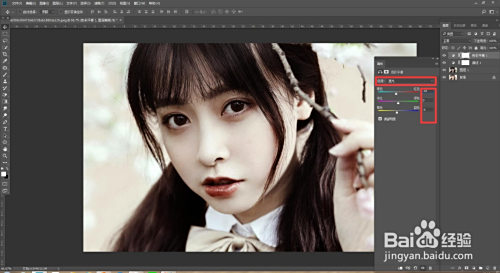调出曲线把亮度调高,点击色彩均衡选择中心调调整数值如图所示。