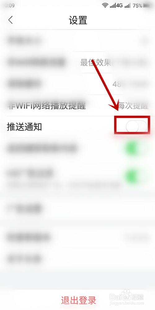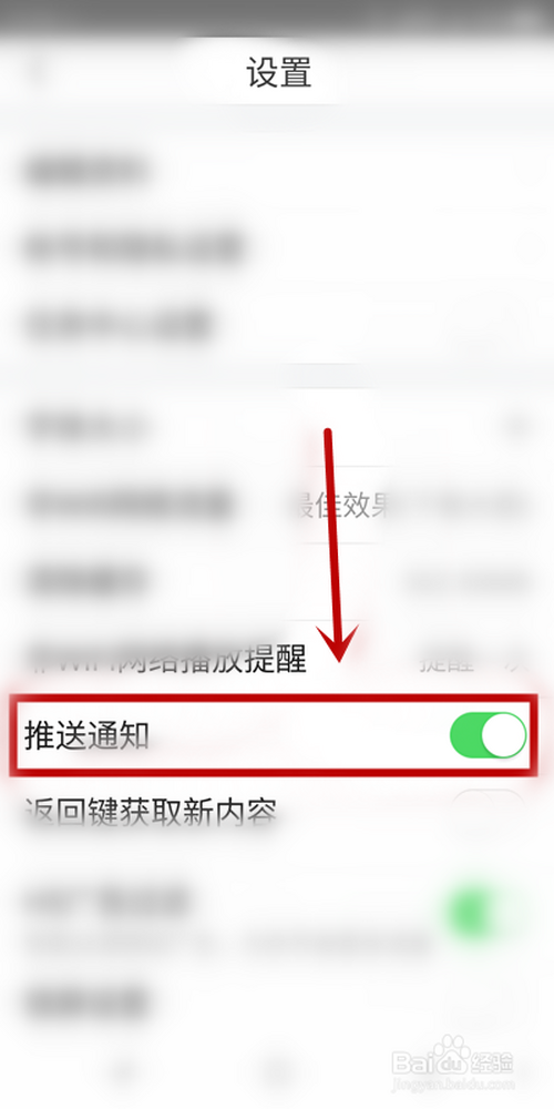 5、【推送通知】选项的功能开关封闭即可