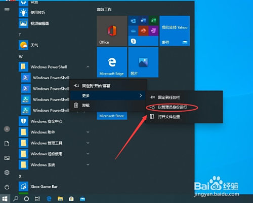 从Windows起头的菜单中找到“Windows powershell”,并以办理员的身份开启运行。