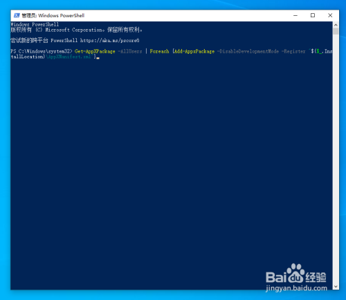 在powershell的号令界面窗口中,输入并运行下面的号令: