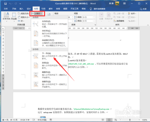 进入结构界面后,点击“分隔符—分页符—下一页”。