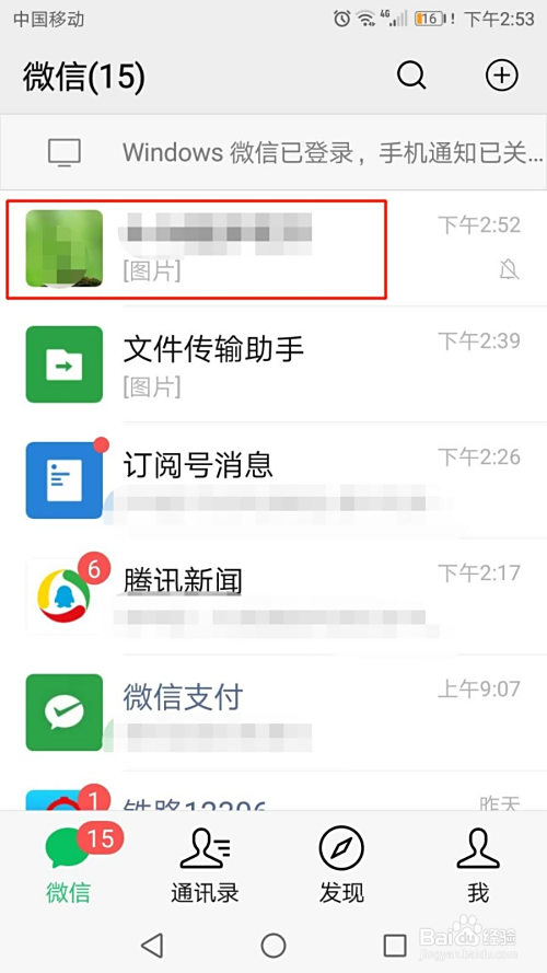 进入微信APP后,点击要发送照片的老友。