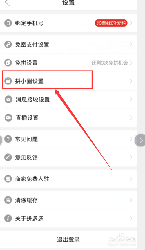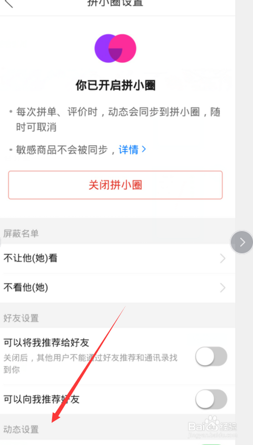第五:进入拼小圈界面下拉找到【拼小圈】动态设置。