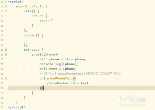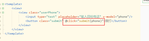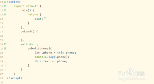 在export default{}感化中的methon方式下建立一个submit(phone)传入监听到的input框中内容
