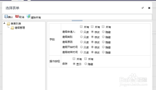 申请人设置:表单权限为申请人节点可编纂