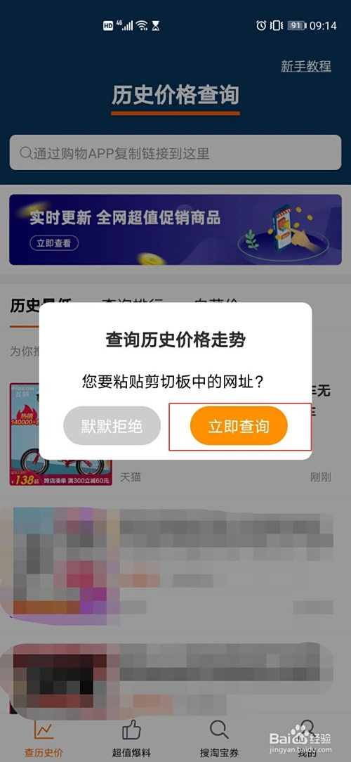 3.第三步按照查询汗青价钱走势提醒,点击当即查询。