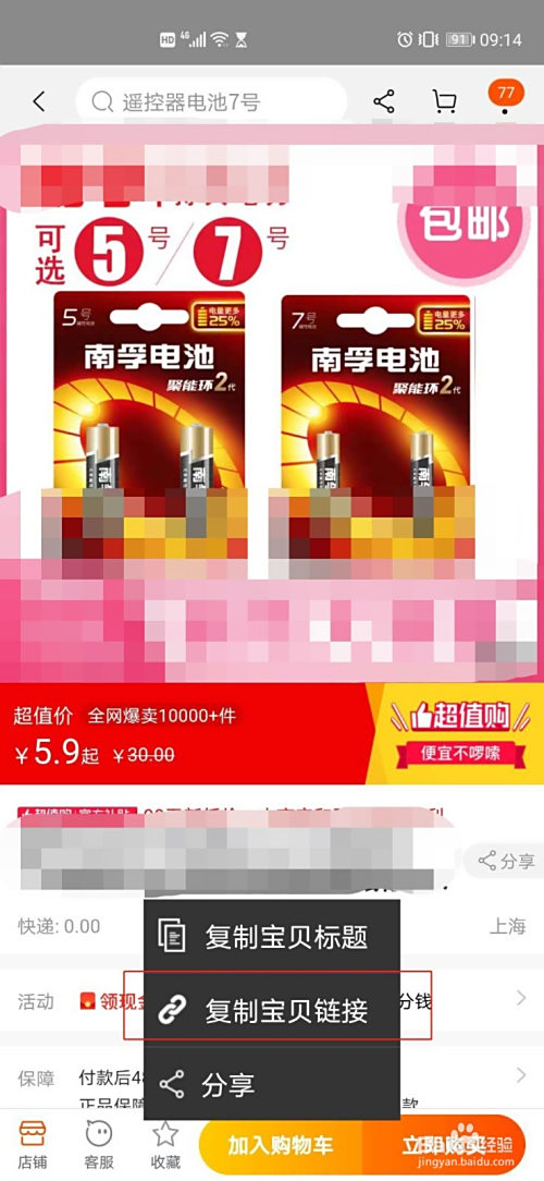第一步打开手机淘宝复制商品链接到剪贴板。