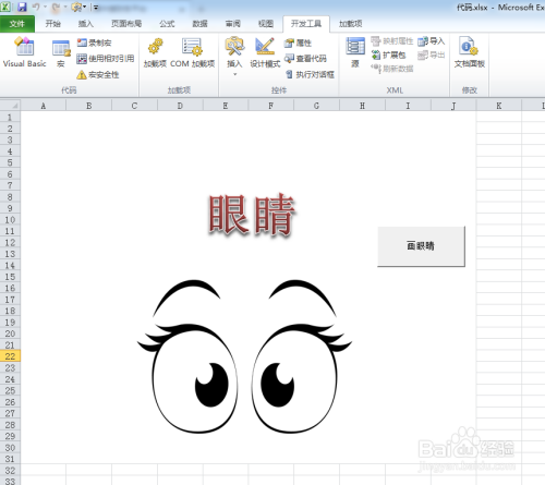 6.点击插入一个按钮控件,并定名为“画眼睛”。