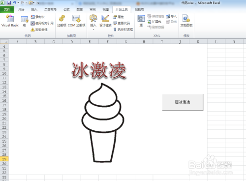 6.点击插入一个按钮控件,并定名为“画冰激凌”。
