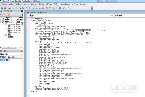 5.在VBA编纂界面,写入指定的VBA代码,然后点击封闭按钮。