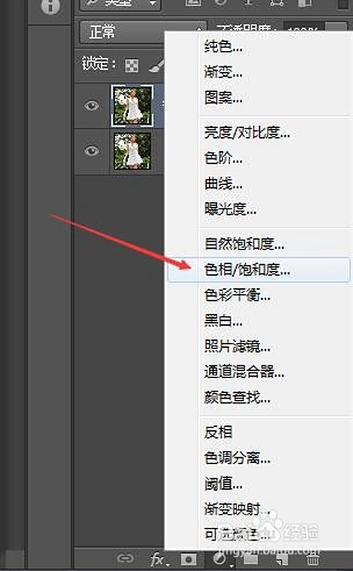 跟着点击【建立新的填充或调整图层】,选择【色相/饱和度】来调节。