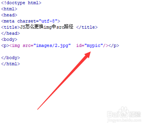 2、在js中,经由过程getElementById()方式获得img对象,利用src属性设置为1.jpg,实现改换img的src路径。
