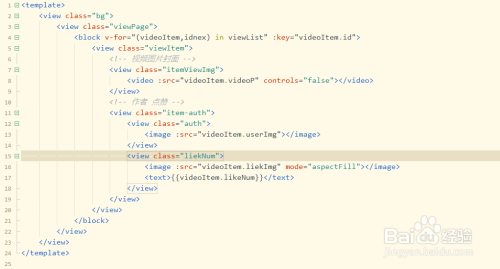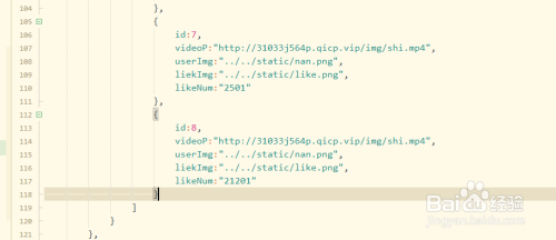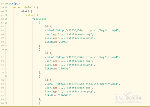 在script模板中的data数据中添加一组数据,用来动态衬着视频列表模块