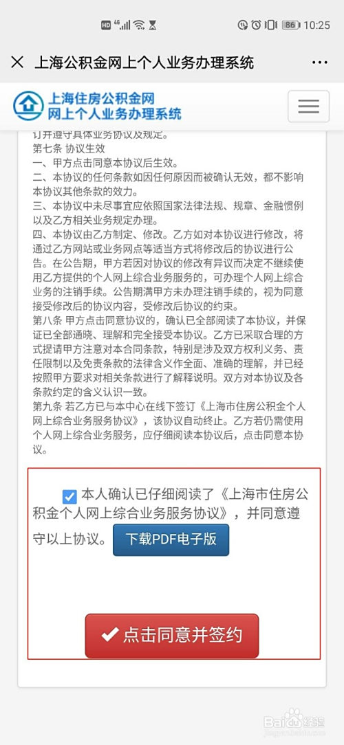 6.第六步最后勾选授权和谈,并点击赞成并签约即可。