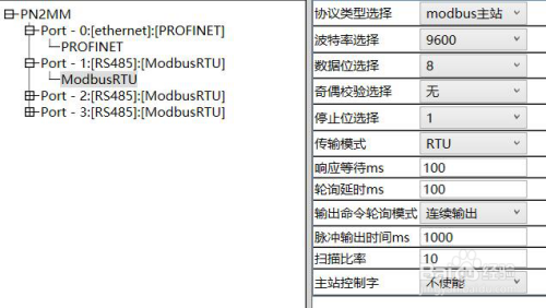 设置Modbus参数(输出号令轮询模式可按照需要选择单次发送,持续发送,脉冲发送等)