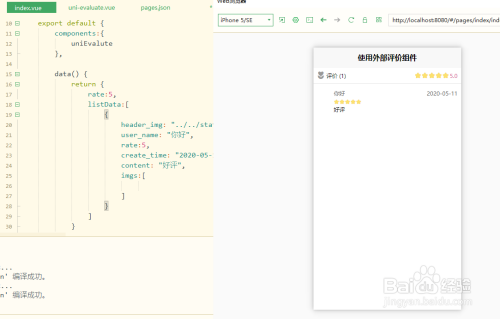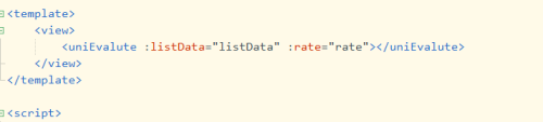 利用xiujun-evalute组件,该组件中需要传入两个参数:list-data="列表数据" :rate="总评分"