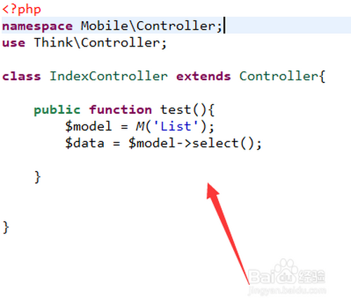 在test()方式中,利用M方式实例化,操作数据库的list表。
