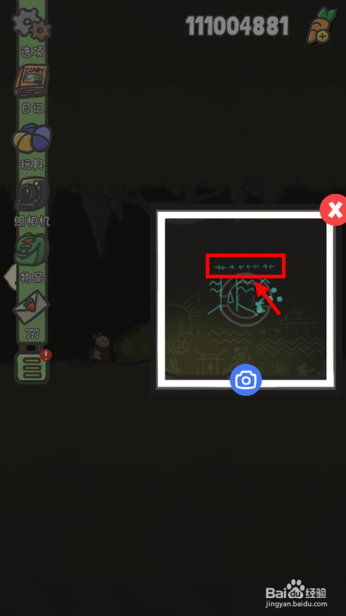 用拍照机拍摄水帘洞深处的墙壁,可看到蓝色指示箭头,按照箭头走就能找到神树。