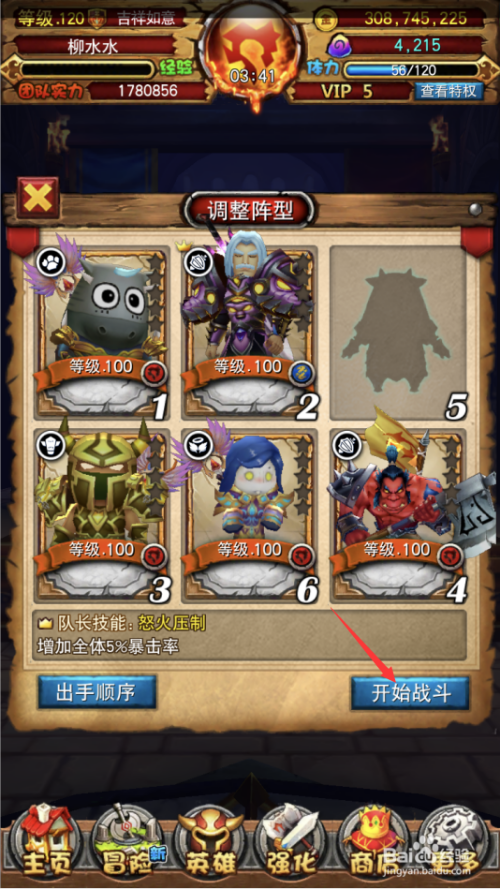按下图所示声势设置英雄站位和出手挨次,点击起头战斗。