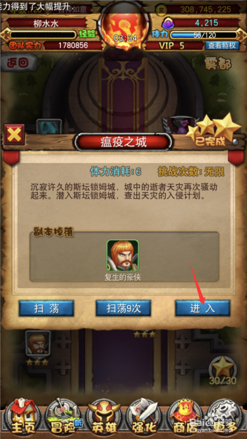 点击游戏本家儿菜单冒险,再点击子菜单副本按钮。