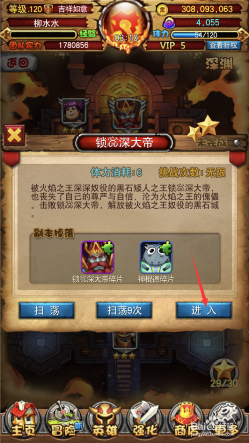 点击游戏本家儿菜单冒险,再点击子菜单副本按钮。
