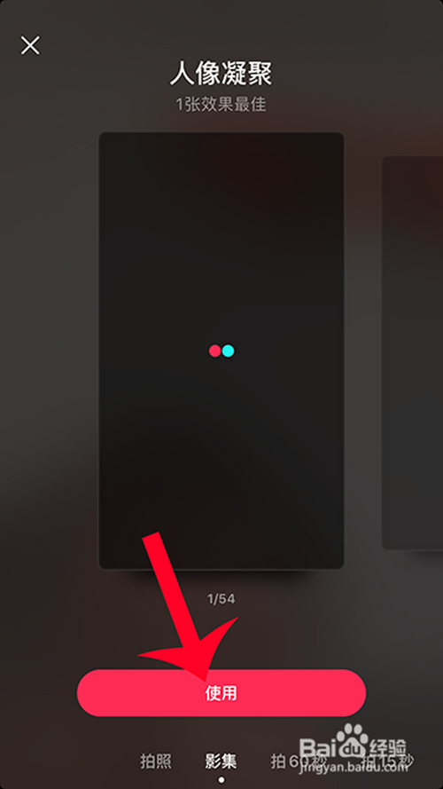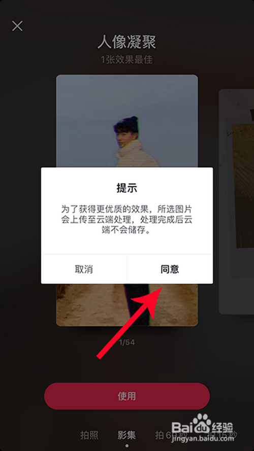 进入影集后,选择“人像凝集”下方的“利用”,再点击“赞成”。