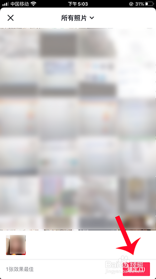 进入手机相册后,选择一张手机里的照片,点击“确定”。