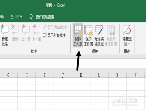 点击上方东西栏的核阅选项,就会呈现庇护工作表的选项。