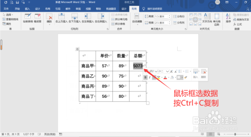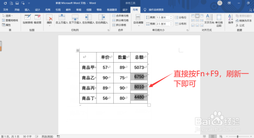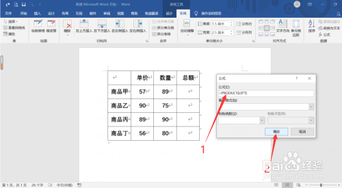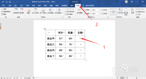 1、点击求乘积的单位格,点击【表格东西】下方的【结构】