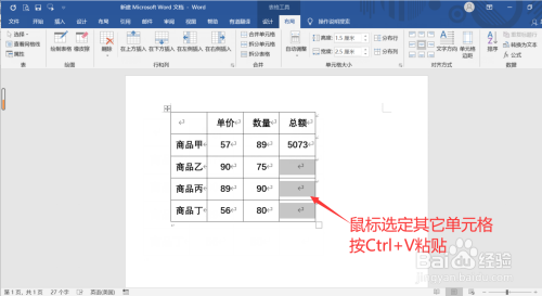 5、鼠标选定其它要计较乘积的单位格,按Ctrl+V粘贴