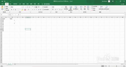 我们只需要给性别一个代号,这里小编用1代表男,2代表女