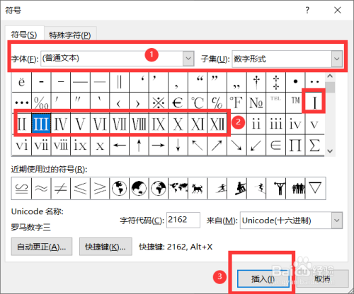 将字体设置为“通俗文本”,子集设置为“数学形式”,找到本身想要插入的大写数学序号,接着点击“插入”