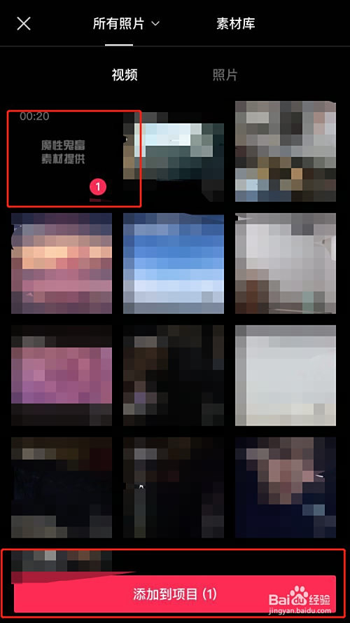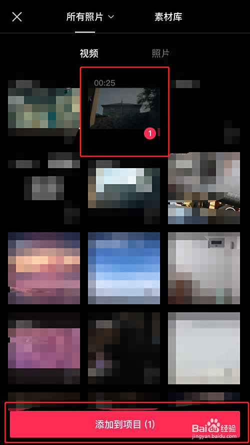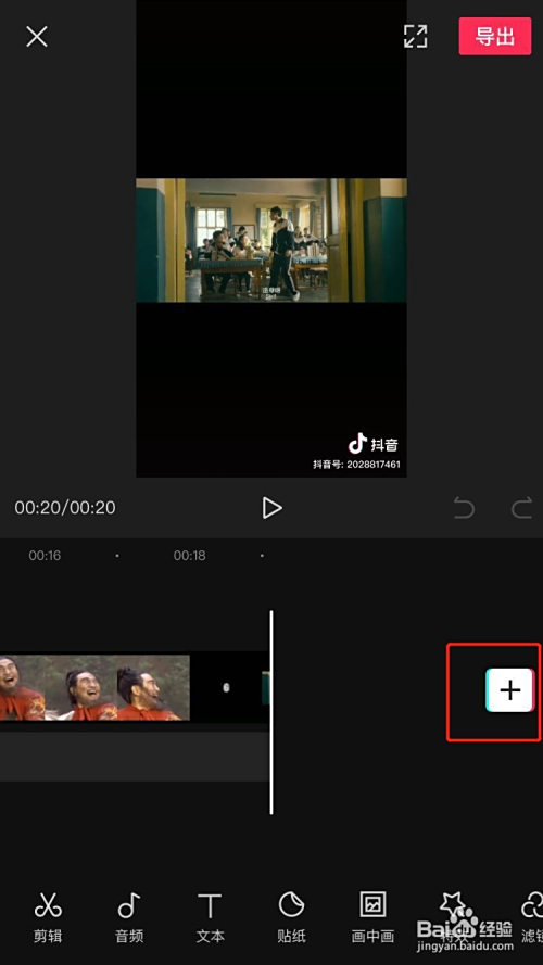 然后把这段素材标的目的右滑动,能看到一个+号,点击这个图标