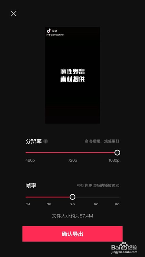 按照需要调整分辩率和帧率(如不需点窜直接确认导出即可),然后点击确认导出,在相册就能查看了