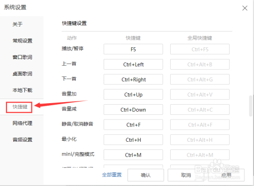 当在方框中填上所需要的快捷键后,点击右下角“应用”即可(或点击“确认”直接退出界面)。见下图