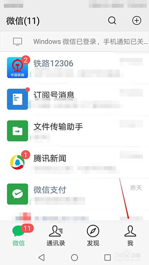 进入手机微信软件,点击右下角我图标。