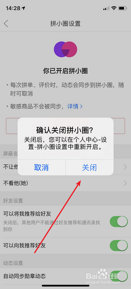 - tips1:封闭该功能后,下次拼单就不会显示到拼小圈了!