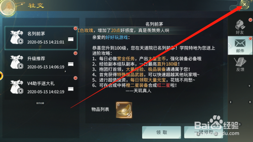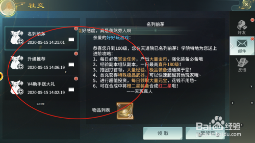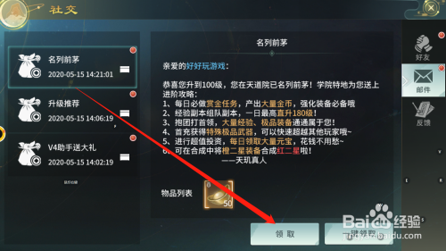可以看到当前可以领取的邮件,以及邮件的奖励