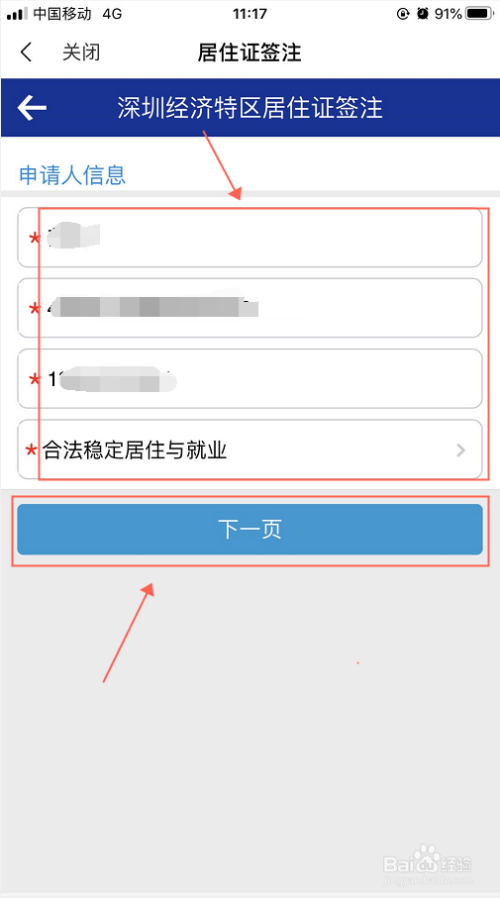 8.填写姓名,身份证信息等,然后点击“下一页”。