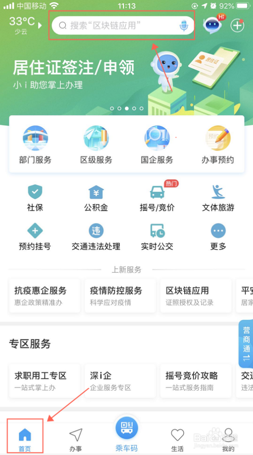 3.登录当作功后,点击“首页”,点击中上的搜刮框。