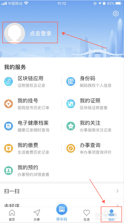 点击左下角的“我”,然后点击上面的“点击登录”,有账户就可以登录,没有账户可以注册一个,如下图所示