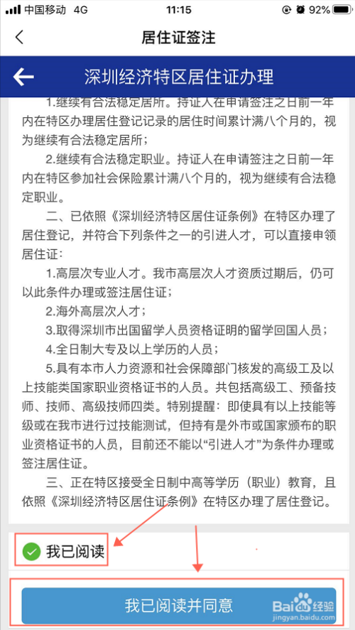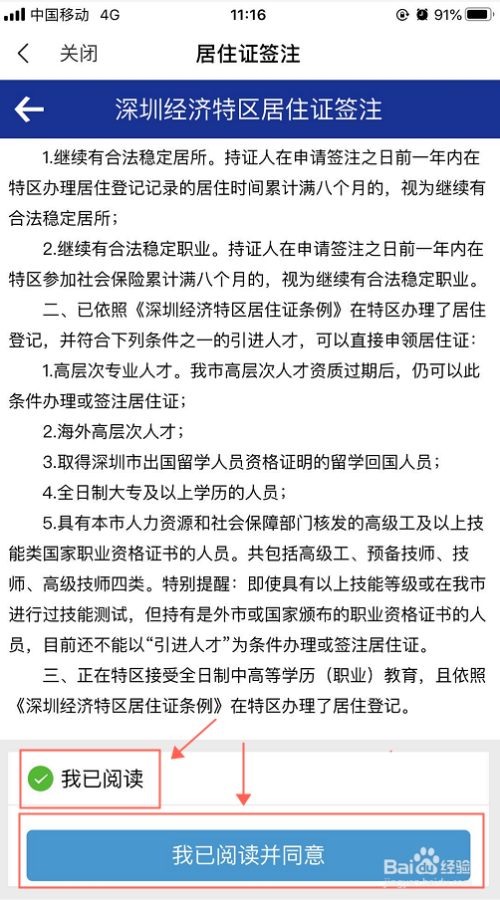 在签注界面,继续勾选“我已阅读”,然后点击“我已阅读并赞成”,如下图所示