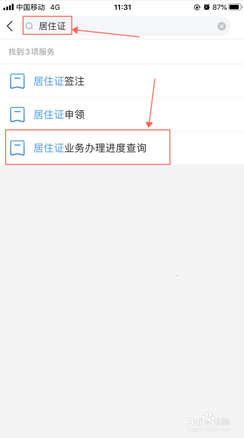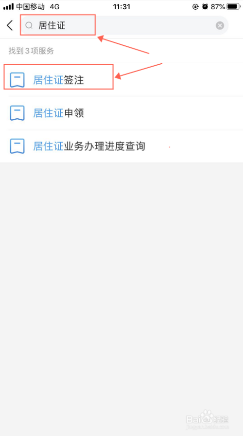 然后在搜刮框中输入“栖身证”,选择第一个“栖身证签注”,如下图所示