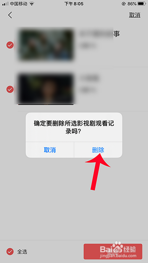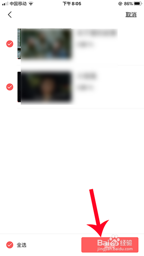 3.选择右上角的“编纂”,选摘要删除的视频打上对勾,点击下方的“删除”, 呈现提醒后再点击“删除”就可以了。